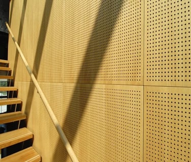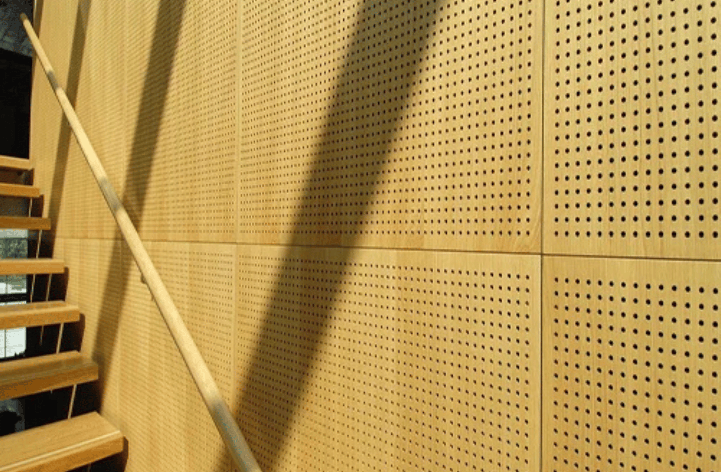 Perforated Wooden Sheets – Designed to absorb and diffuse sound efficiently.